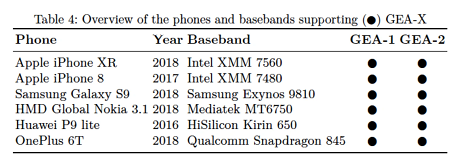 prohibited network operators from using GEA-1 in 2013, the researchers say that both GEA-1 and GEA-2 persist to this day because GPRS is still used as a fallback in certain countries and networks.